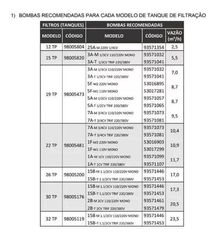 São utilizadas com os filtros de areia das séries CFA e TPII, conforme mostrado em tabela anexa.