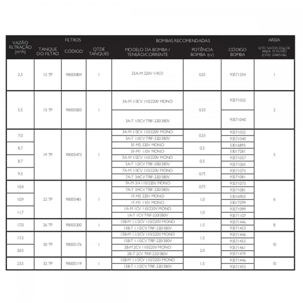 - Volume máximo para piscina coletiva: 33.000 Litros;